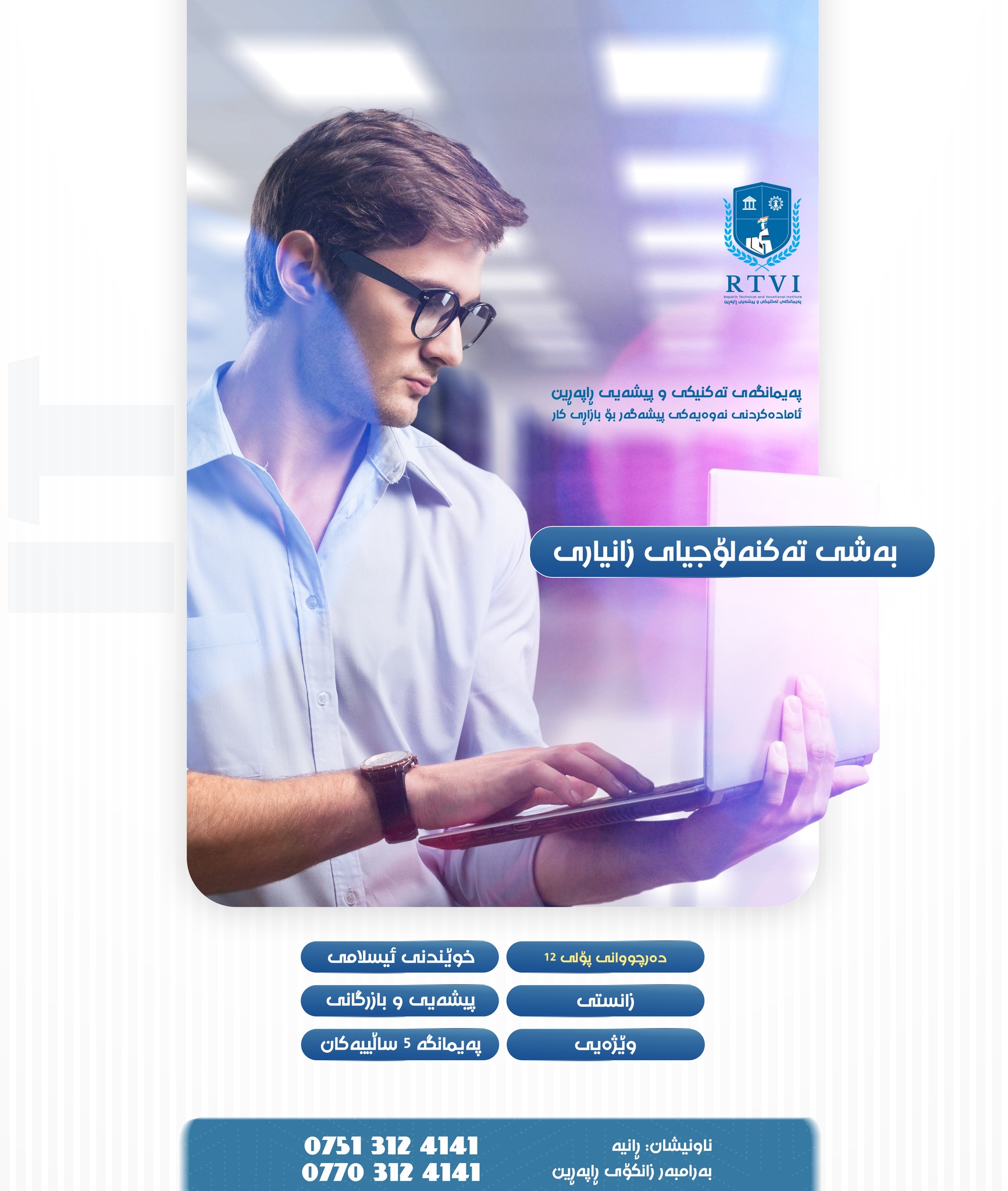 Information Technology (IT) Department is one of the core and essential departments of Raparin Technical and Vocational Institute. The program spans two years, during which students receive both theoretical and practical education in modern technology and computer-related fields. Instructors professionally and innovatively teach the fundamentals of programming, computer networks, database systems, and cybersecurity. Students are also trained in software development, IT system management, and troubleshooting technical issues, preparing them to work in both public and private sectors.